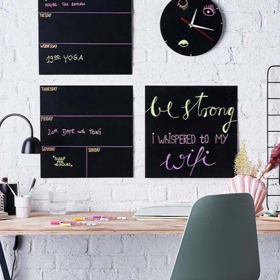 These Chalk Markers allow you to create fun and bright designs across a wide range of surfaces such as windows, glass and mirrors. A perfect way to personlise your room or get party ready! The colours create clean lines on surfaces, yet are easily removable with a damp cloth.