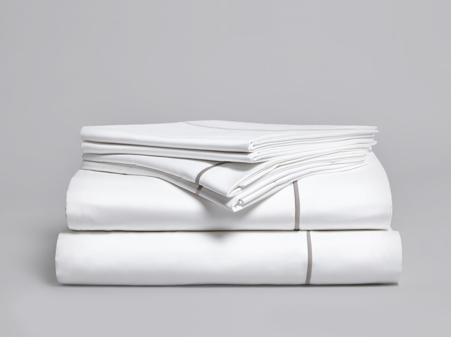 Gensho - 600 count linen featuring a dark taupe cording detail on the pillowcase/s and duvet cover