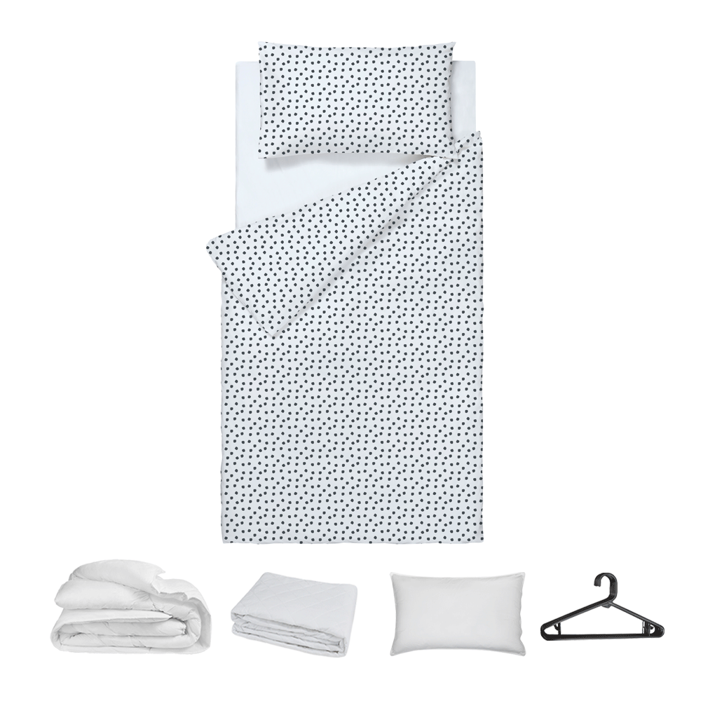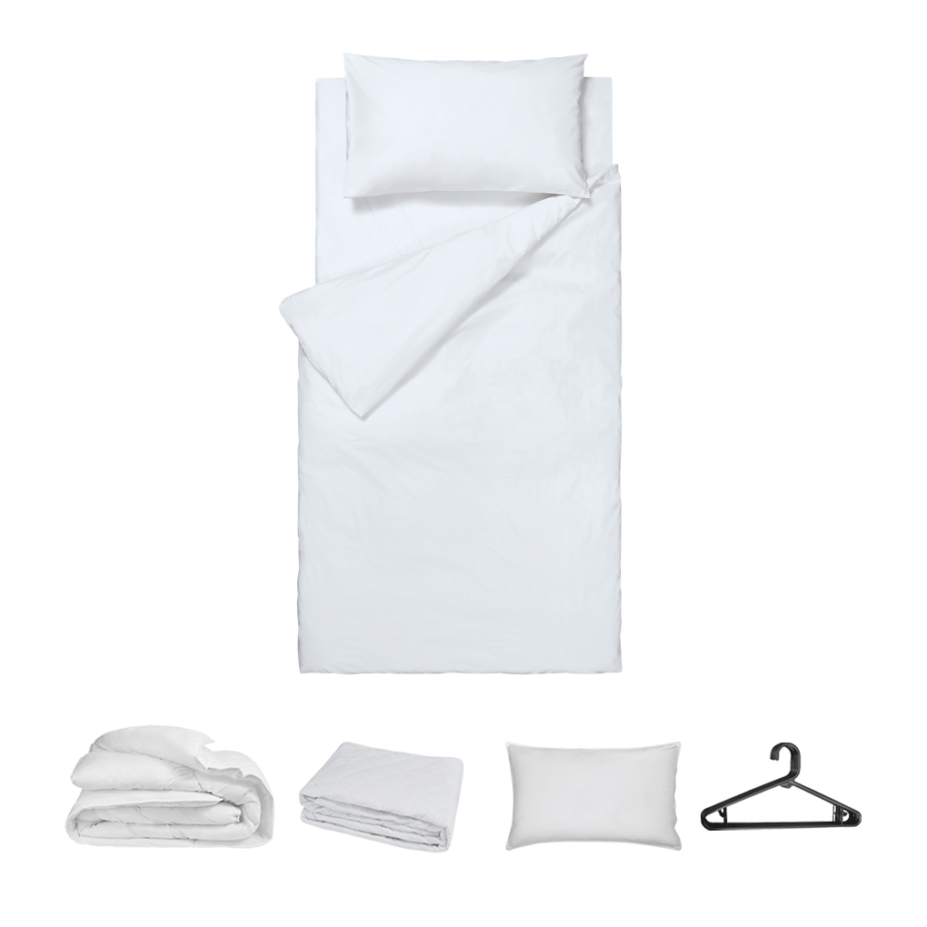 Made from 50% polyester, 50% cotton mix and featuring a 144 thread count, our standard bedlinen can be washed up to temperatures of 40°C.